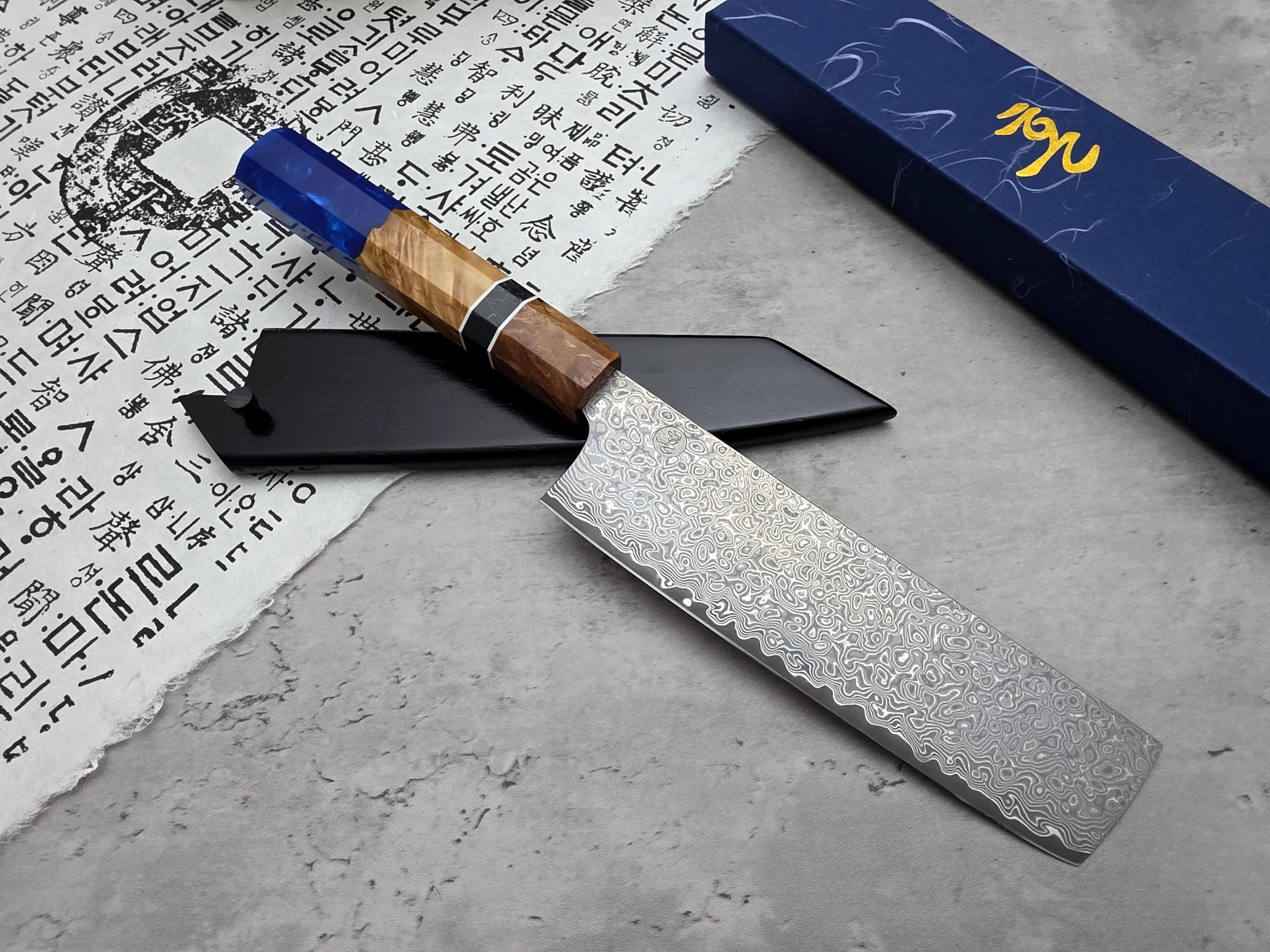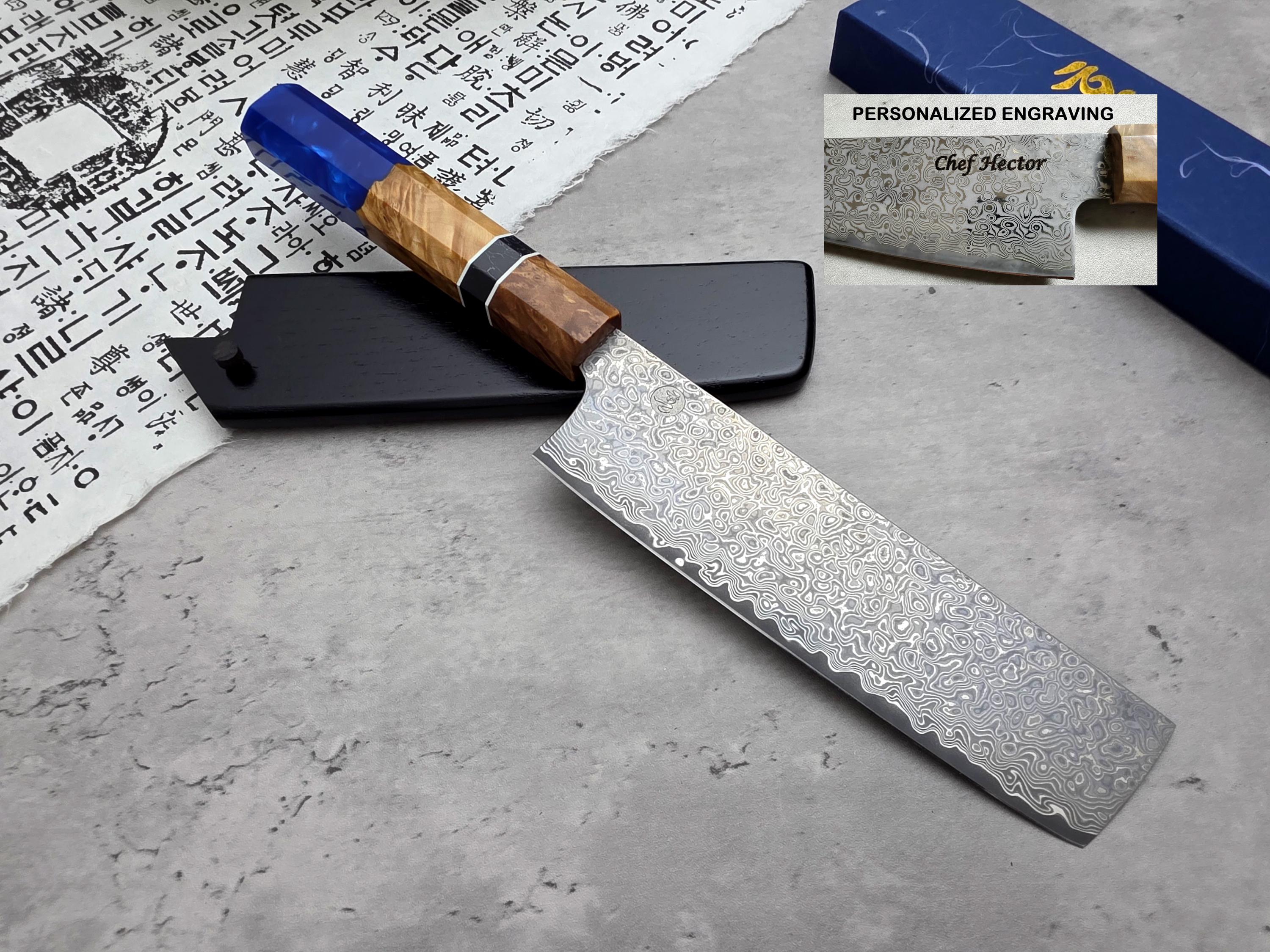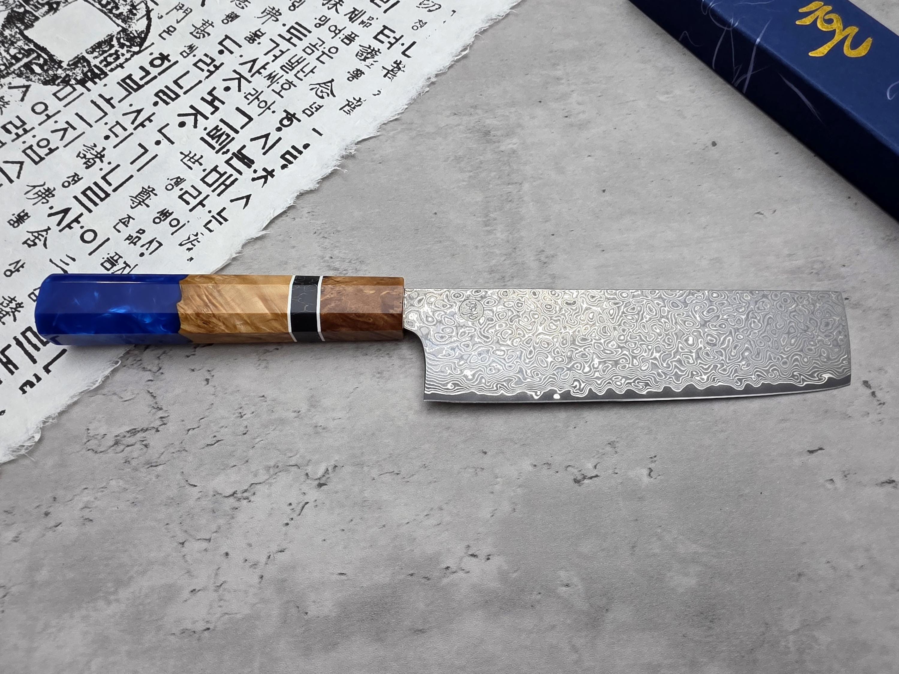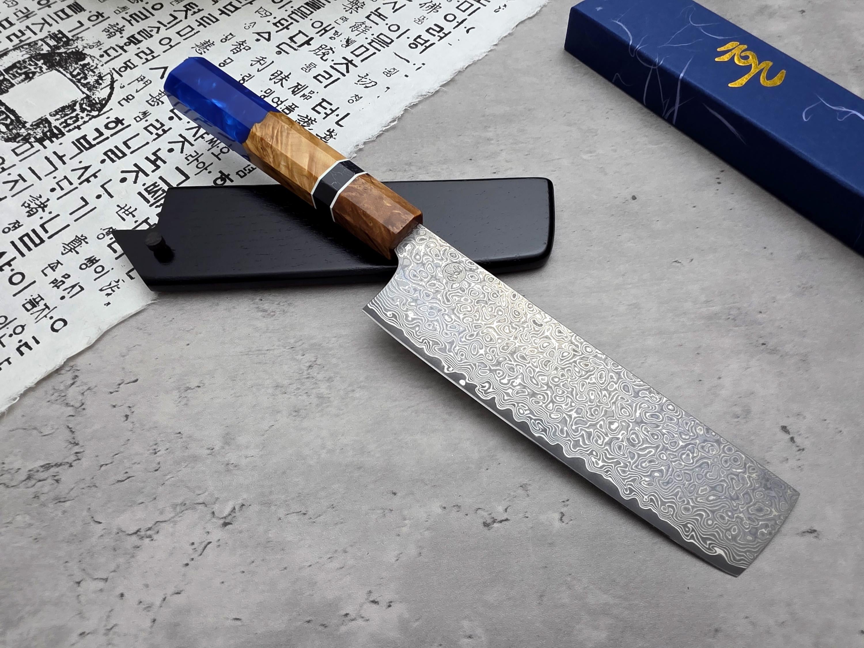 HONN Chef Knife Nakiri 7.25" (185mm) blade Damascus