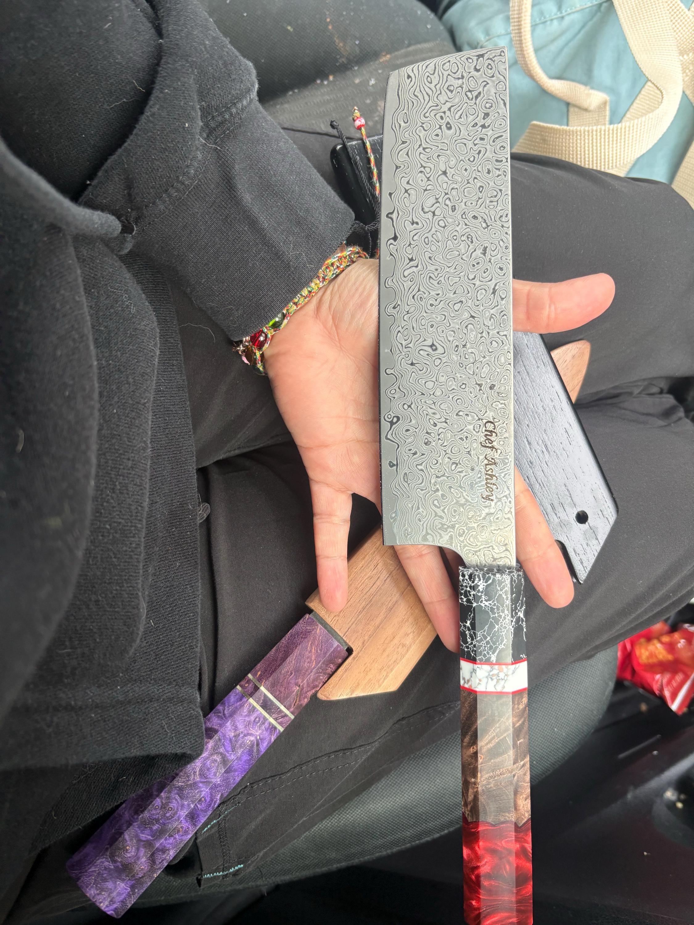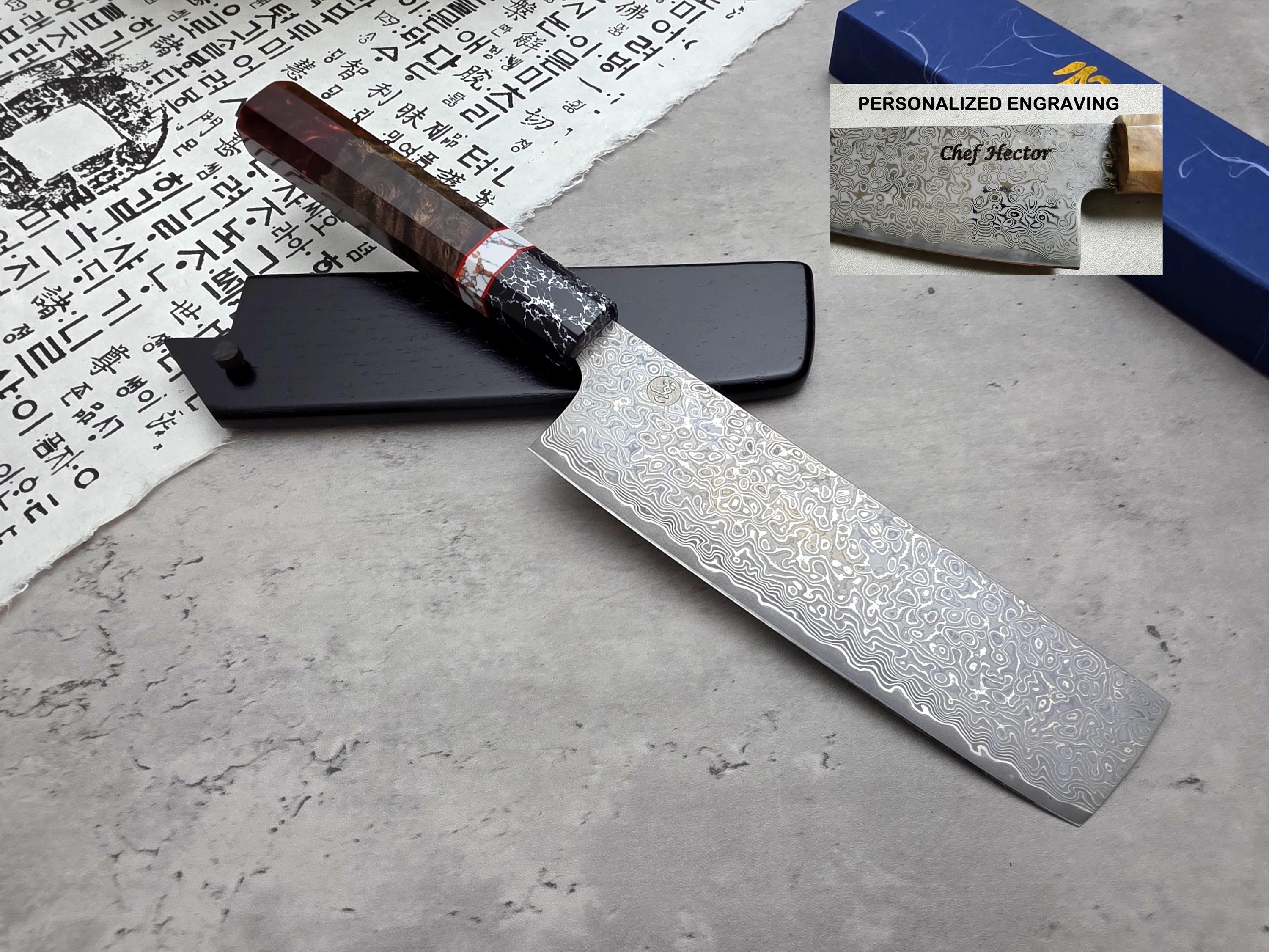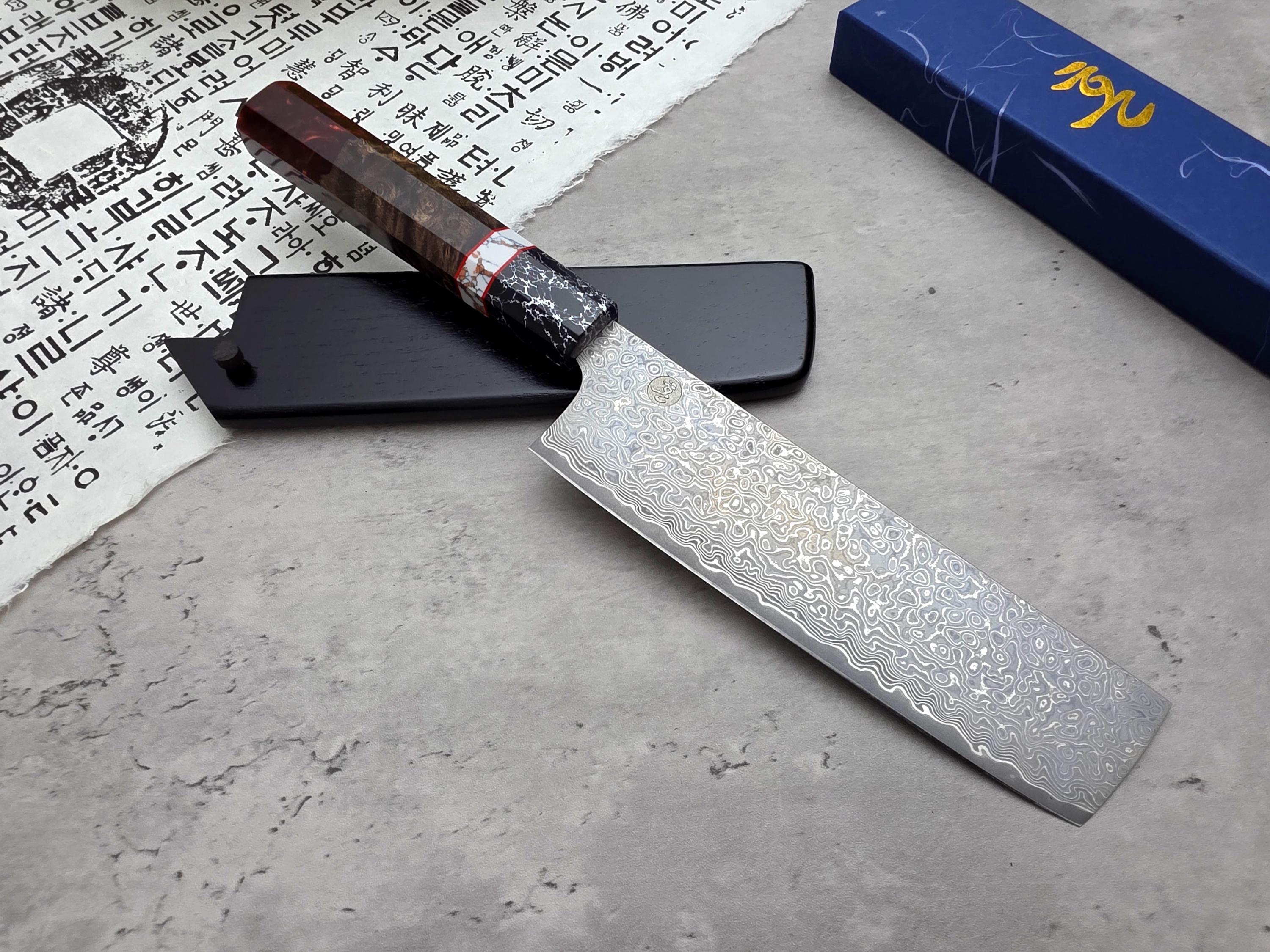 If you happen to acquire one of our carbon steel knives, please do take note that these types of steel may rust over time. Always keep your knife dry with a dry towel beside you when you prep. They will also develop different shades and color. This is okay and it actually helps the blade not rust over time. Please use food grade mineral oil on your blade if you are storing it for long periods of time.