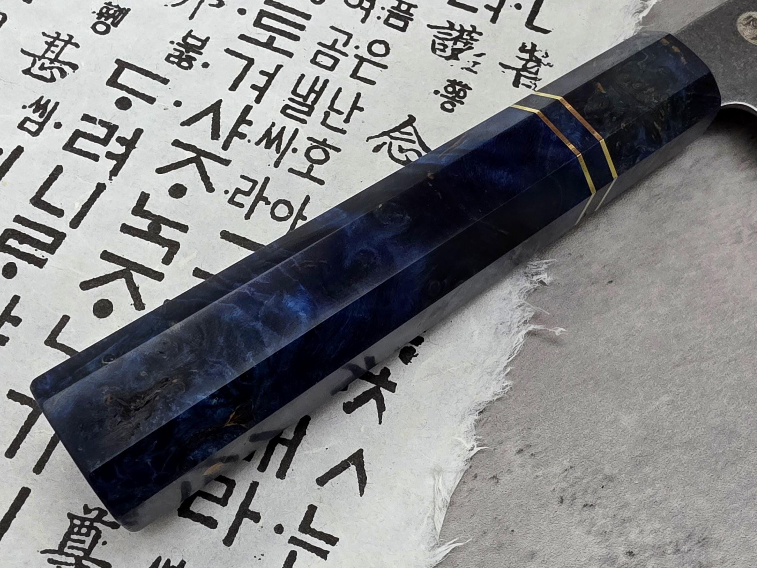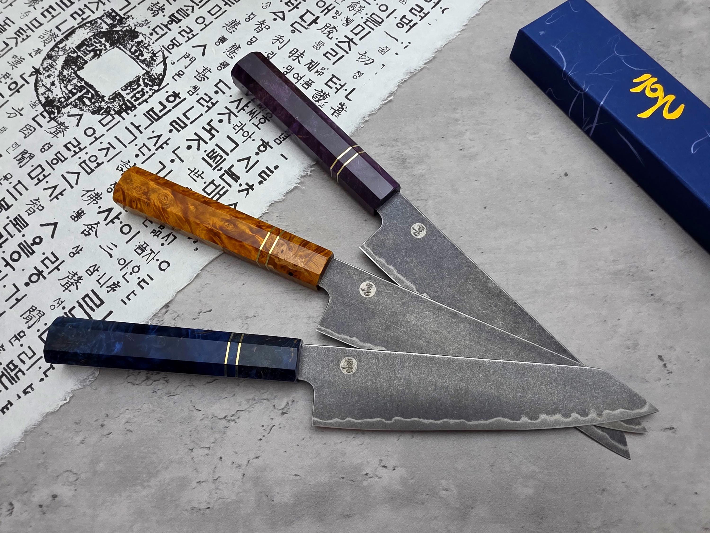 If you happen to acquire one of our carbon steel knives, please do take note that these types of steel may rust over time. Always keep your knife dry with a dry towel beside you when you prep. They will also develop different shades and color. This is okay and it actually helps the blade not rust over time. Please use food grade mineral oil on your blade if you are storing it for long periods of time.