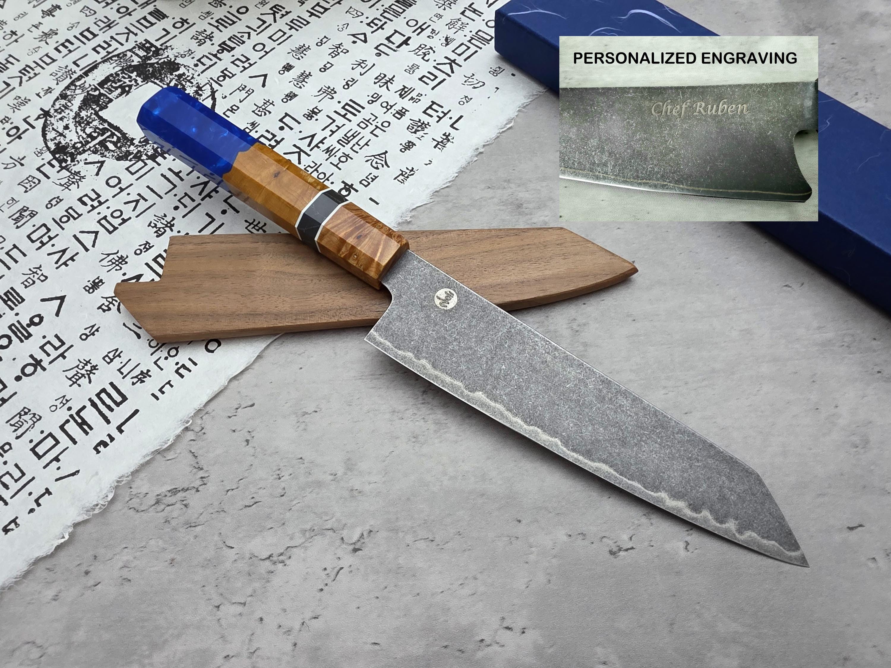 If you happen to acquire one of our carbon steel knives, please do take note that these types of steel may rust over time. Always keep your knife dry with a dry towel beside you when you prep. They will also develop different shades and color. This is okay and it actually helps the blade not rust over time. Please use food grade mineral oil on your blade if you are storing it for long periods of time.