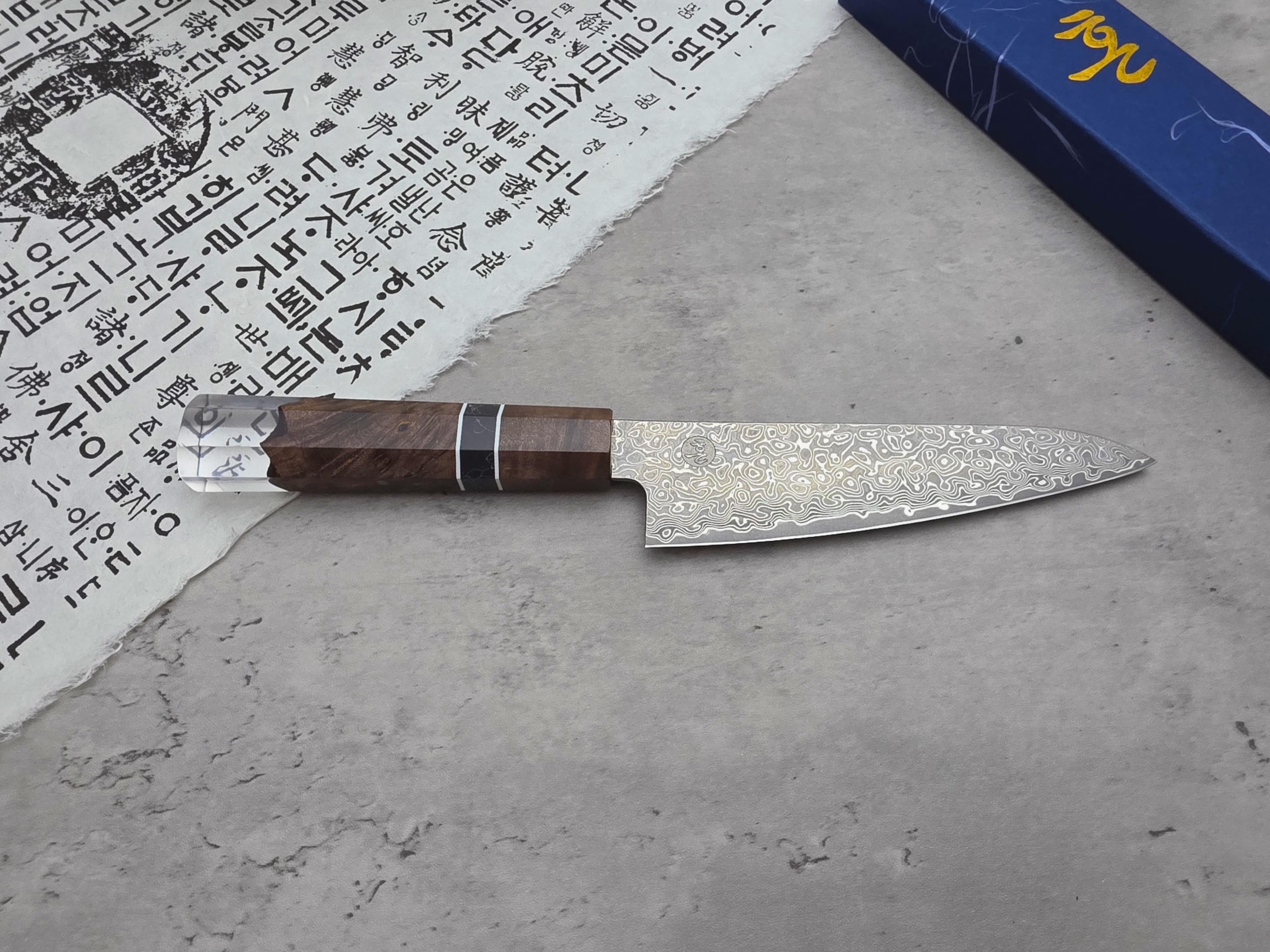 BLADE - VG 10 cutting core. Made with high-quality Damascus steel on each side. highly wear-resistant. Acid-pickling finished.